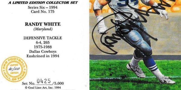 From 1989 through 2016, many members of the Pro Football Hall of Fame signed a few of their cards for Goal Line Art.